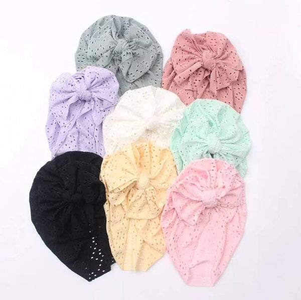 Deze mooie mutjes met strik zijn perfect om de hoortoestellen van uw baby op hun plaats te houden.